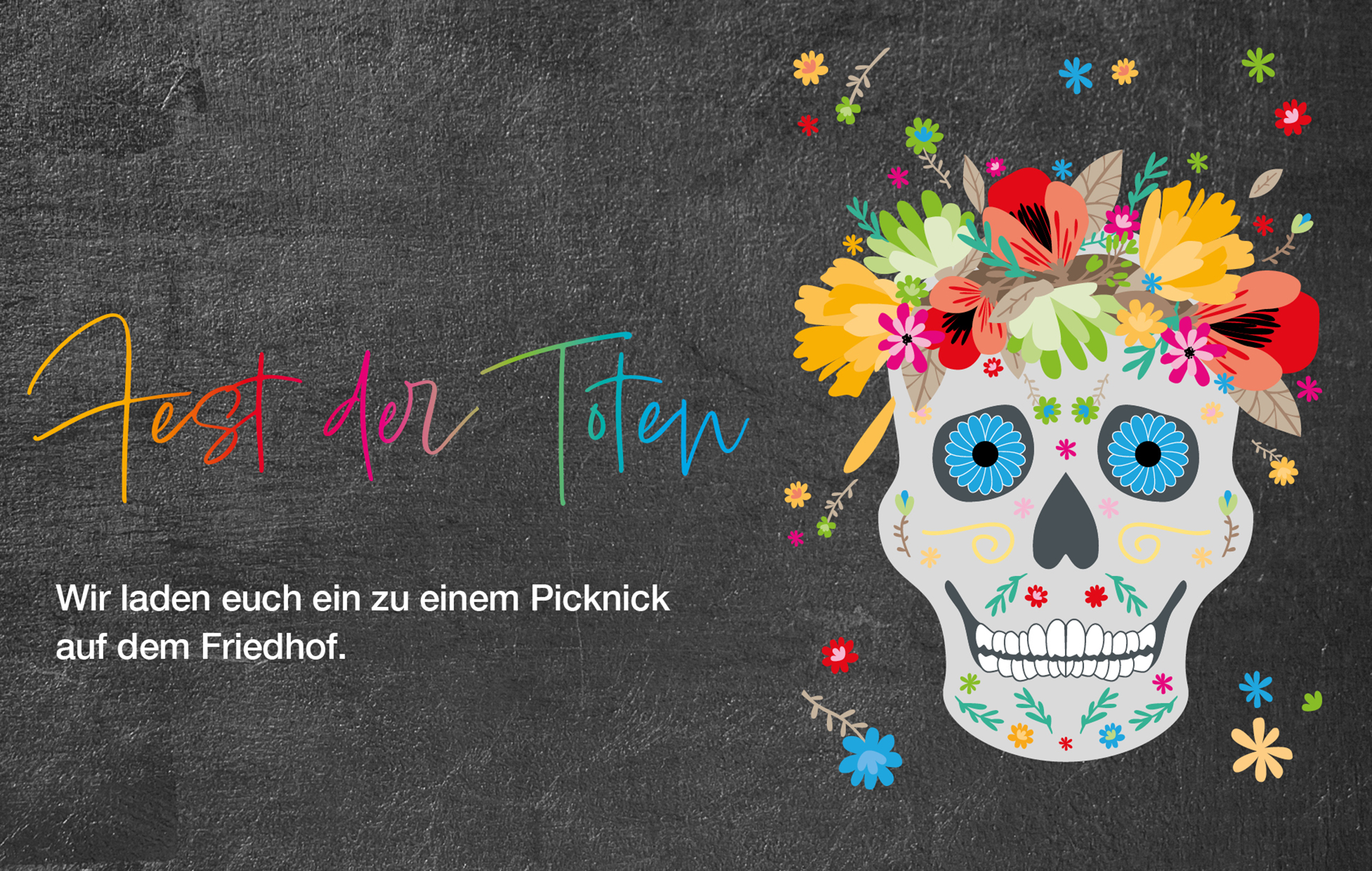 In Mexiko feiert man jedes Jahr das „Fest der Toten“: Zu Allerheiligen gehen die Menschen auf den Friedhof und picknicken auf den Gräbern ihrer Verstorbenen. Weil es bei unseren Temperaturen schöner ist, im Sommer zu picknicken, feiern wir das Fest der Toten am 23. August auf dem Friedhof in Essen Haarzopf. Es stehen Tische und Bänke bereit. Es gibt Getränke und Kuchen und alle, die dazukommen, bringen zusätzlich ein paar Kekse oder Kuchen mit.